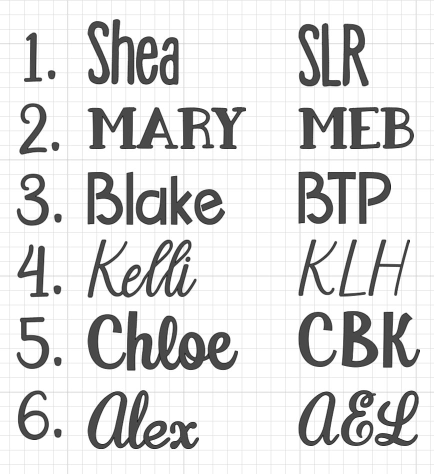We can now personalize card clutches. Choose from the 6 font choices below. Please type the name or initials EXACTLY like you would like in the comment section.
