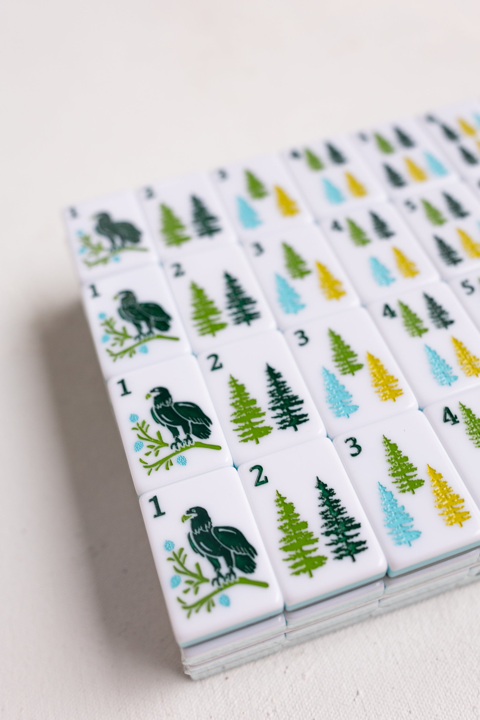 Crafted with premium materials, the set blends green and white tones reminiscent of the lush woodlands and clear skies. Perfect for game nights, this set brings the charm of The Woodlands to your table.