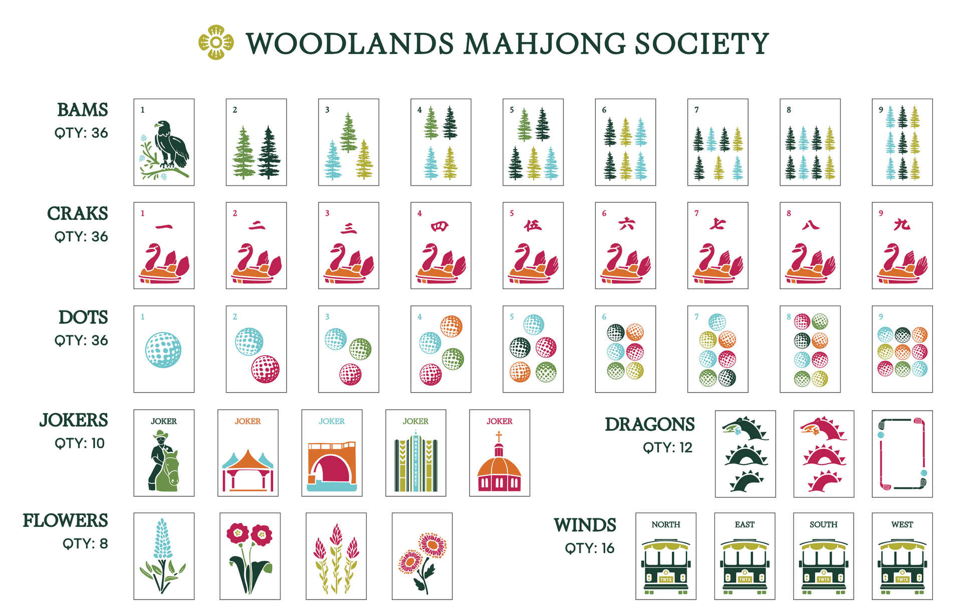 Inspired by The Woodlands, TX, the Township Series captures the essence of its iconic elements. Each tile reflects the serene landscapes and vibrant community spirit, featuring designs like the Red Dragon tile echoing our very own Midgard dragon in Lake Woodlands.